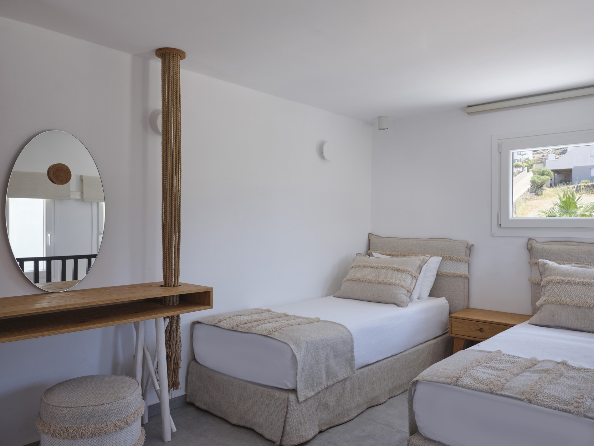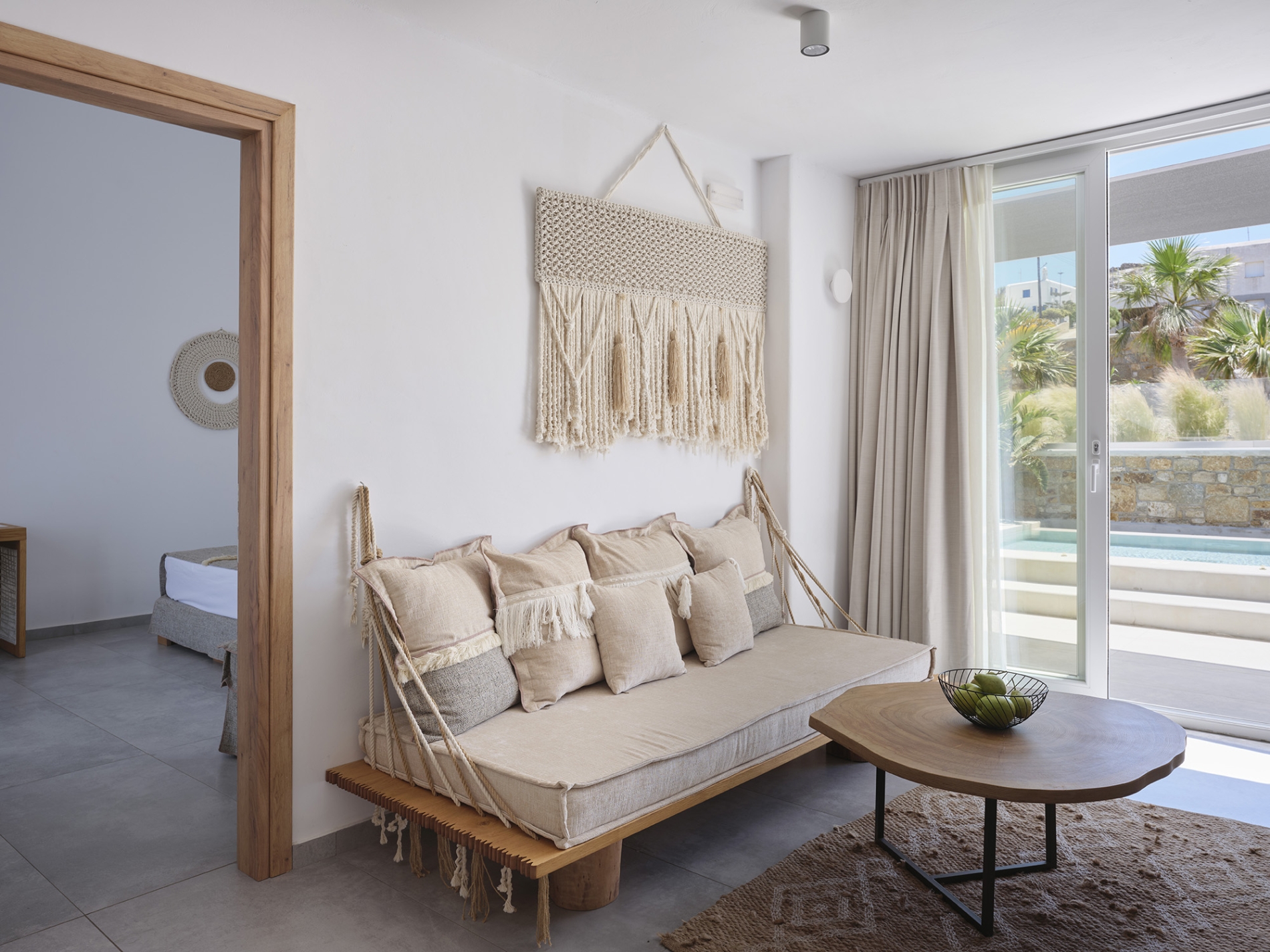 The pinnacle of supreme bohemian living in Mykonos is found in our two-level maisonette with private pool! Enjoy chic rustic design and handmade furniture, warm natural colors and attention to the slightest detail for the optimal accommodation option. Relax in the inviting interior composed of two comfy double beds and sofa beds, the designated sitting area with kitchenette and the modern bathroom. And outdoors, soak under the sun in between your dives in the private swimming pool savoring each moment in nature’s bliss!