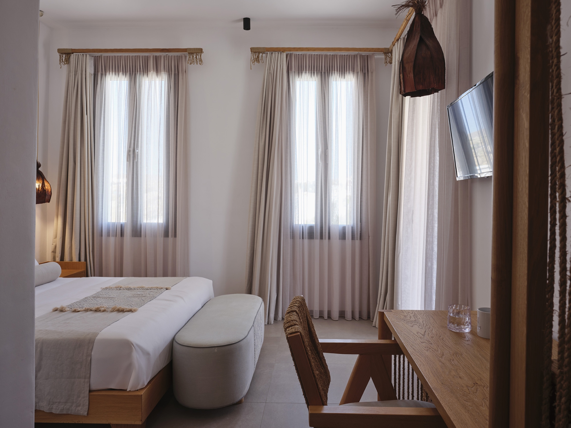 In search of a warm and welcoming place to stay in Mykonos, where you are free to relax and take in that precious sense of serenity and stillness? A king size double bed offers guests the opportunity to relax and enjoy the optimal sleep experience, while the spacious room also features a modern bathroom and a private patio with a view to the swimming pool, surrounded by nature’s bliss.